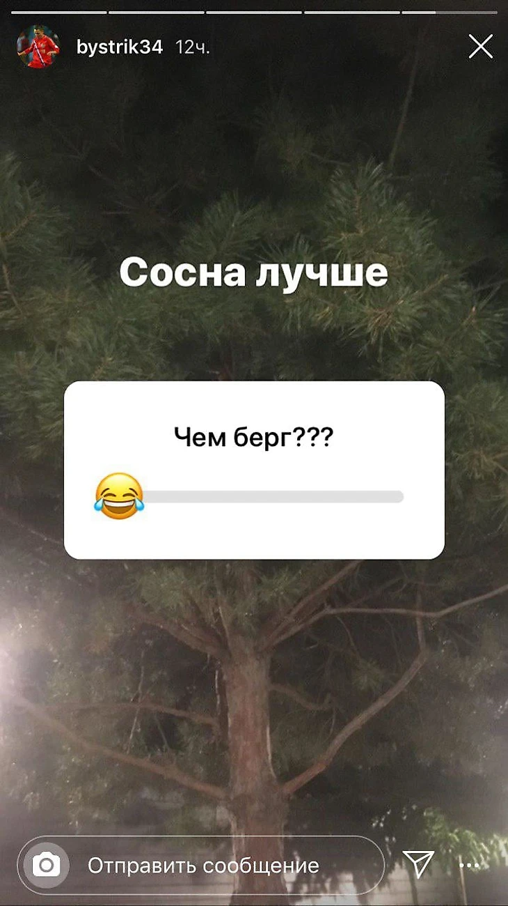 На следующей фотографии он задал подписчикам вопрос: сосна лучше, чем Берг?