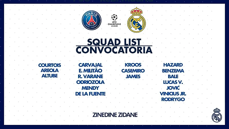 «Реал» опубликовал заявку на матч первого тура группового этапа Лиги чемпионов с «ПСЖ».