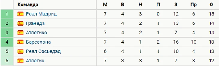 «Атлетико» с 14 баллами идет третьим, пропустив вперед «Гранаду», у которой лучше разница мячей.