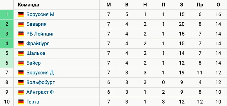 Менхенгладбахская «Боруссия» вышла на 1-е место в Бундеслиге, «Бавария» и «Лейпциг» отстают на 2 очка