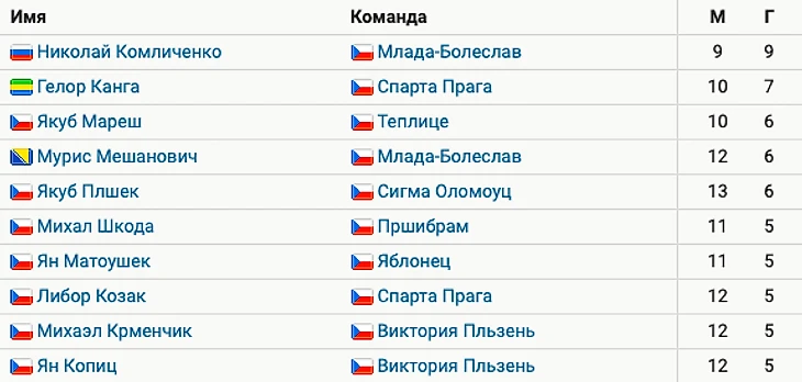Комличенко забил 9-й гол и укрепил лидерство в гонке бомбардиров чемпионата Чехии