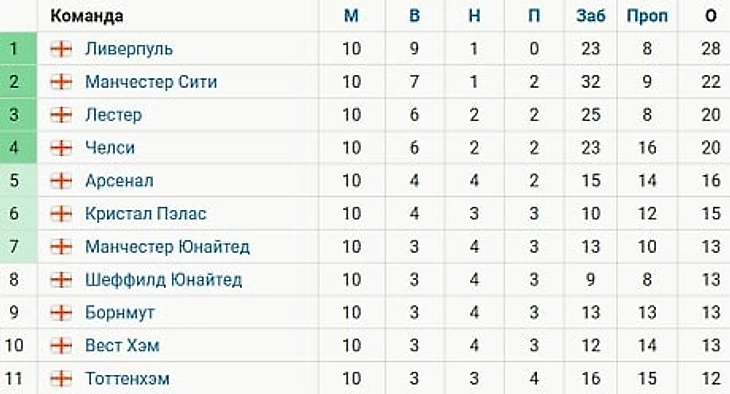 Премьер-лига Англия (АПЛ). 10 тур