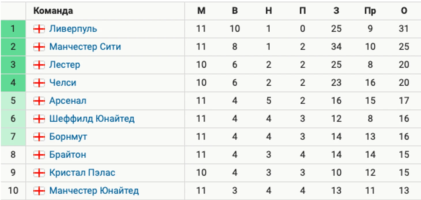 В 11-м туре АПЛ «Ливерпуль» победил «Астон Виллу» (2:1).