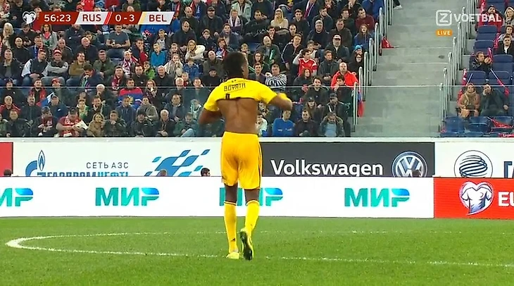 Защитник сборной Бельгии Дедрик Боята после перерыва матча квалификации Евро-2020 против России (3:0, второй тайм) вернулся на поле в чужой футболке.