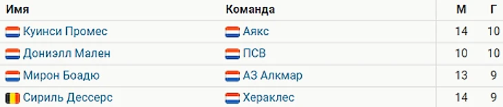 Промес забил 10 голов в 14 матчах Эредивизи и делит 1-е место в списке бомбардиров