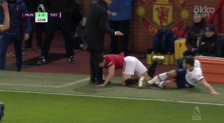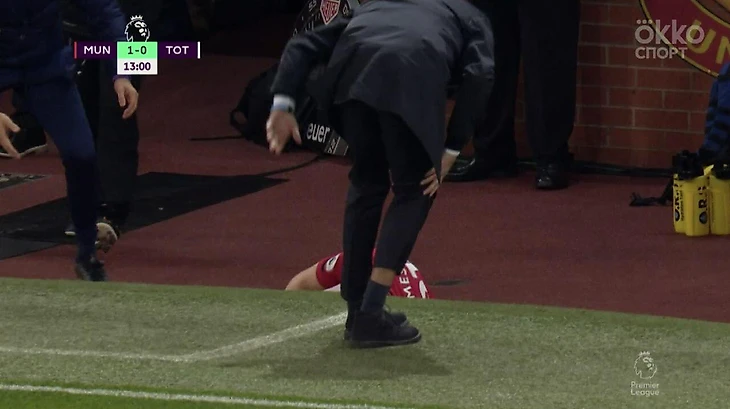 На 13-й минуте игры полузащитник «Юнайтед» Дэниэл Джеймс вылетел за боковую линию после стыка с хавбеком «шпор» Харри Уинксом и врезался в главного тренера лондонцев Жозе Моуринью.