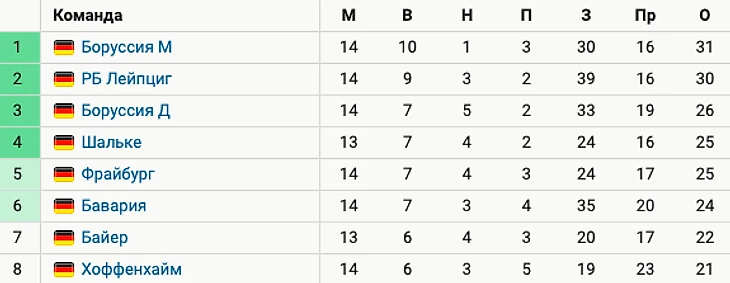 Клуб из Менхенгладбаха остался лидером в чемпионате, «Бавария» отстает на 7 очков и идет на 6-м месте.