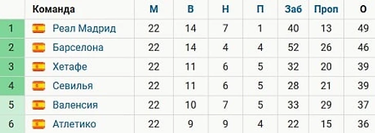 «Барселона» на 3 очка отстает от «Реала» после 22 туров Ла Лиги