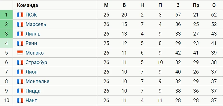 Команда набрала 39 очков за 26 туров чемпионата Франции и поднялась на пятое место в турнирной таблице.