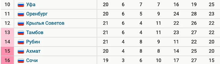 Благодаря победе над «Рубином» самарский клуб покинул зону стыковых матчей, поднялся на 12-е место и опережает «Тамбов» в таблице по дополнительным показателям.