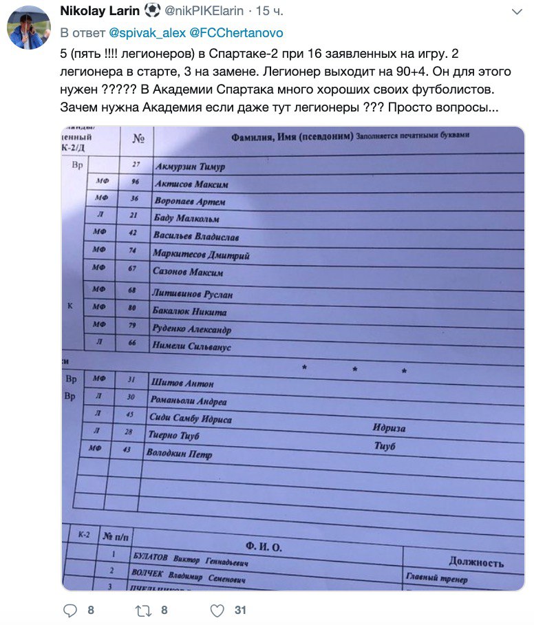 РФС знает о наших желаниях, но тут мы уже ничего сделать не можем, им принимать решение», – сказал директор «Чертаново».