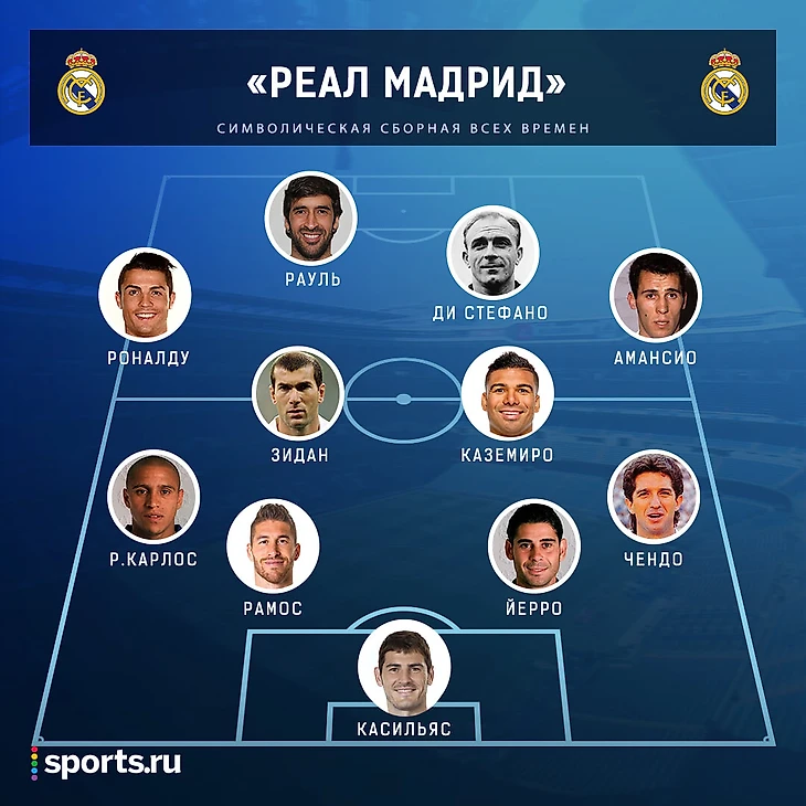 Сборная всех времен по версии болельщиков: Икер Касильяс, Серхио Рамос, Фернандо Йерро, Чендо, Роберто Карлос, Каземиро, Зинедин Зидан, Амансио Амаро, Криштиану Роналду, Альфредо Ди Стефано, Рауль.