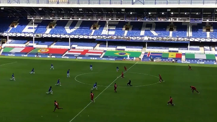 Игроки «Эвертона» и «Ливерпуля» поддержали борьбу с дискриминацией перед очным матчем 30-го тура Премьер-лиги (0:0, второй тайм).