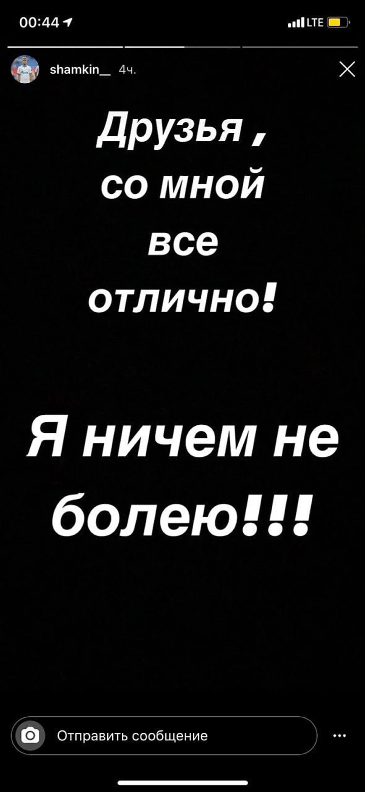 «Друзья, со мной все отлично! Я ничем не болею!» – написал Шамкин в сторис инстаграма.