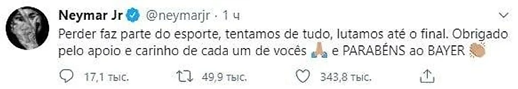 «Поражения – это часть спорта. Мы пытались сделать все и сражались до конца. Спасибо за поддержку и любовь каждого из вас 🙏🏽 И поздравления «Байеру», – написал бразилец.