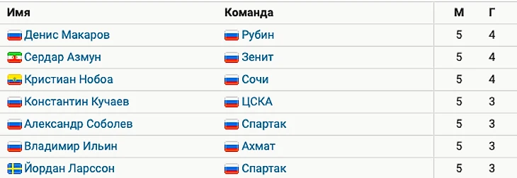 В списке бомбардиров выше Соболева идут полузащитник «Рубина» Денис Макаров, форвард «Зенита» Сердар Азмун и хавбек «Сочи» Кристиан Нобоа.