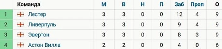«Ливерпуль» и «Эвертон» стартовали с трех побед в чемпионате Англии, как и «Лестер», но уступают «лисам» по разнице забитых и пропущенных голов.