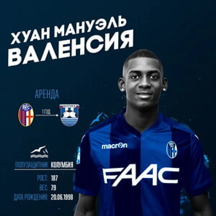 «Балтика» объявила о трансфере атакующего полузащитника «Болоньи» Хуана Валенсии.