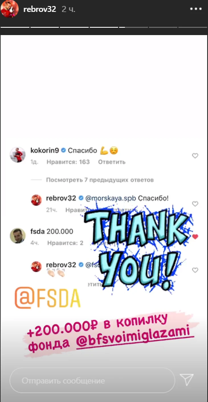 Средства будут направлены в благотворительный фонд Реброва «Своими глазами».