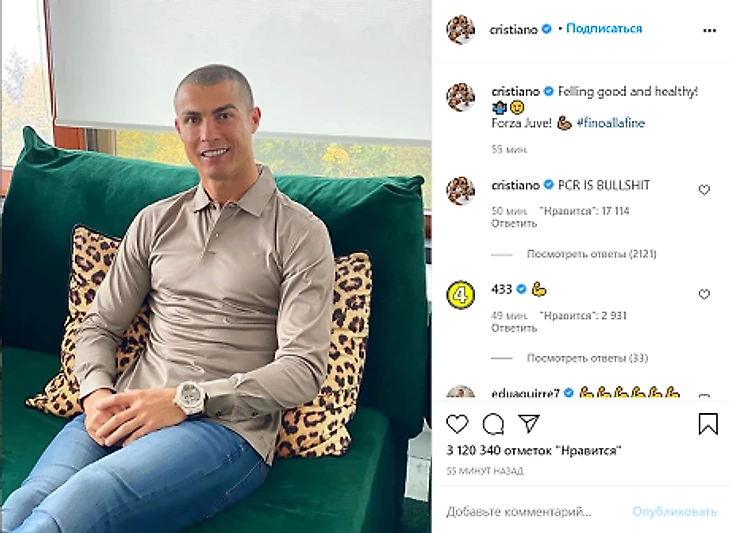 После этого португалец оставил комментарий к своей записи: «ПЦР – это херня».