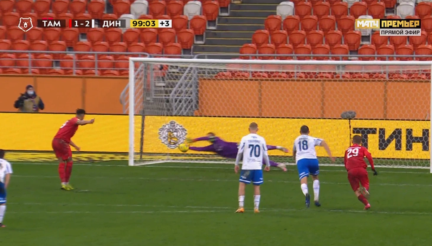 Шунин отбил пенальти на 99-й минуте матча с «Тамбовом» при счете 2:1