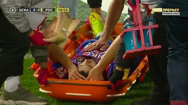 Зайнутдинов покинул поле на носилках, но сидя, а не лежа. На 9-й минуте вместо него на поле вышел защитник Виктор Васин.