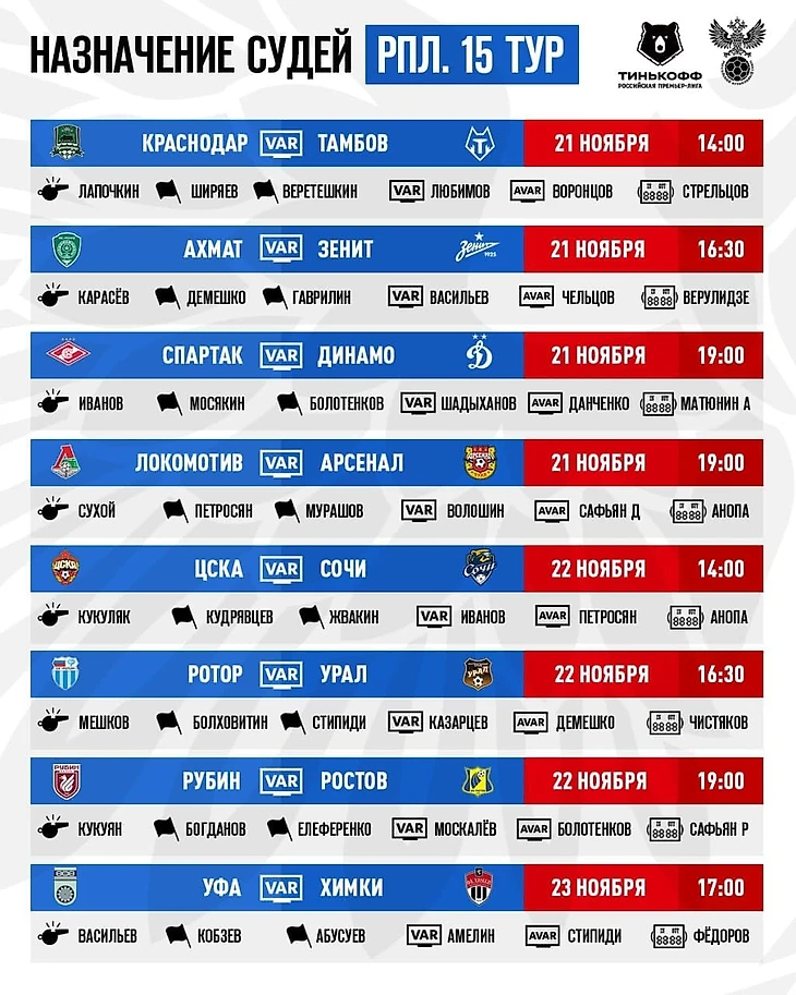 На дерби «Спартака» и «Динамо» будет работать Сергей Иванов, на ВАР – Павел Шадыханов.