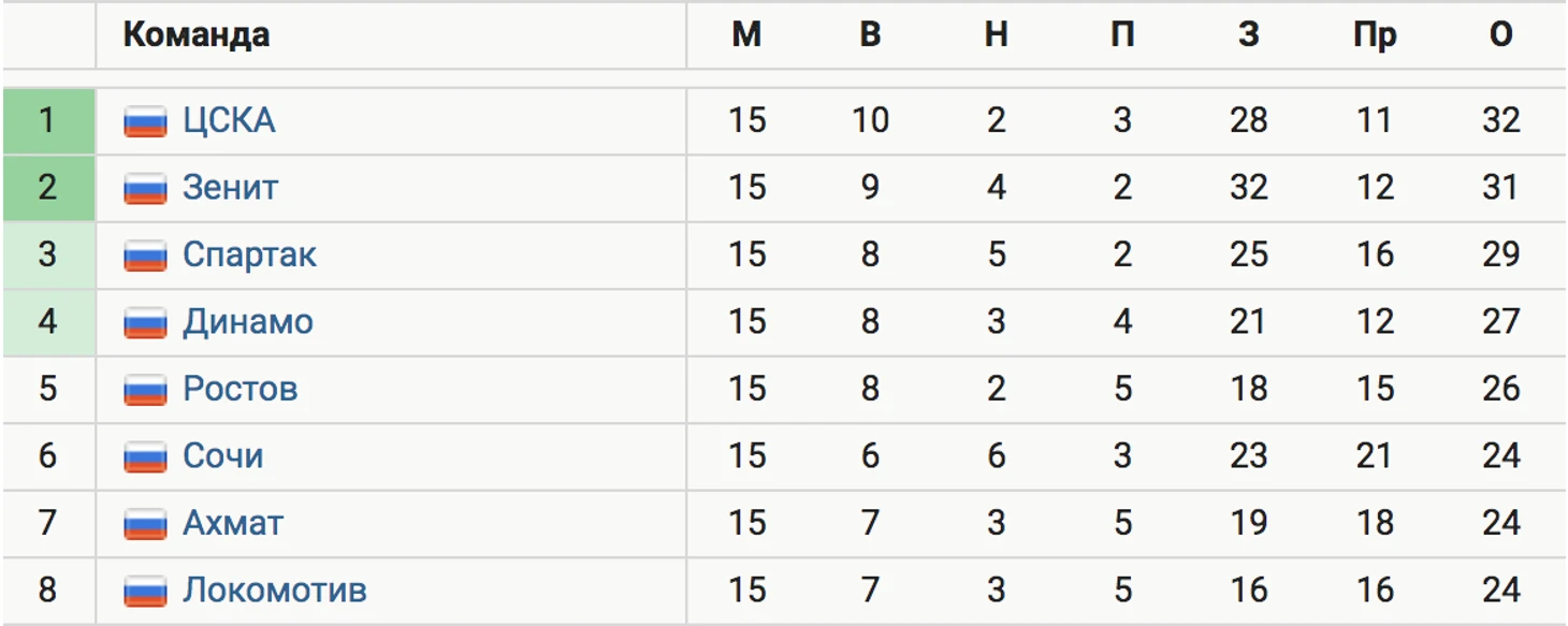 Команда Валерия Карпина занимает 5-е место в турнирной таблице после первого круга, набрав 26 очков в 15 играх.