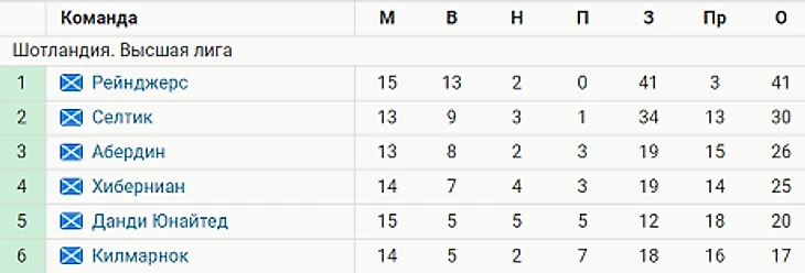 «Рейнджерс» опережают «Селтик», идущий вторым, на 11 очков. У «кельтов» два матча в запасе.
