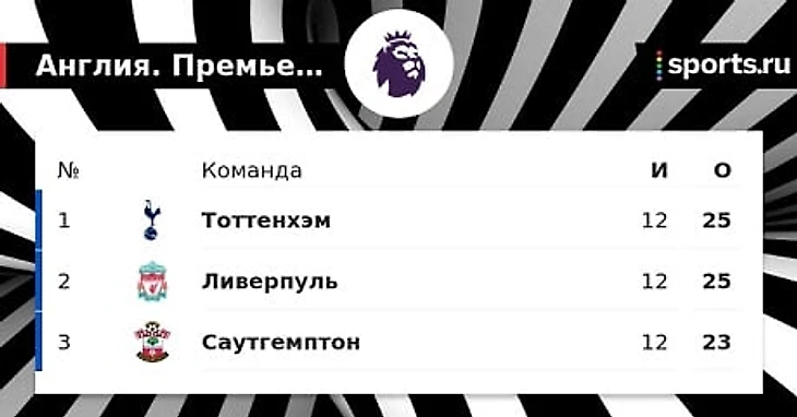 Лидирует в таблице «Тоттенхэм». Обе команды набрали по 25 очков, но «шпоры» опережают соперника по разнице голов.