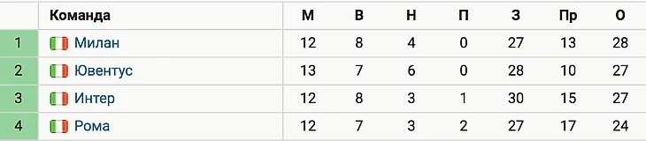 Однако «россонери» свою игру в рамках 13-го тура проведут в воскресенье, так же как и «Интер» (27 очков).