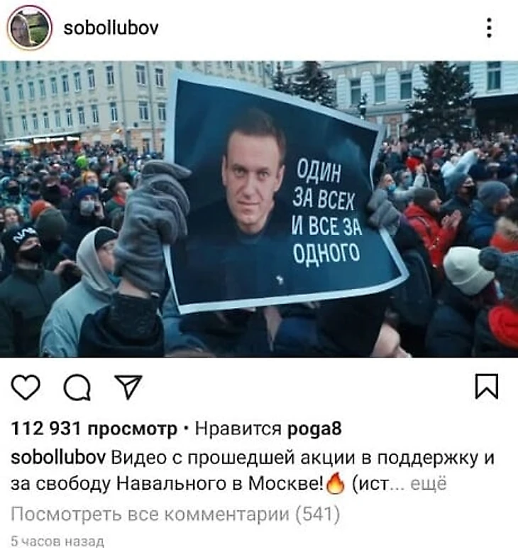 Погребняк лайкнул пост Соболь об акции за свободу Навального