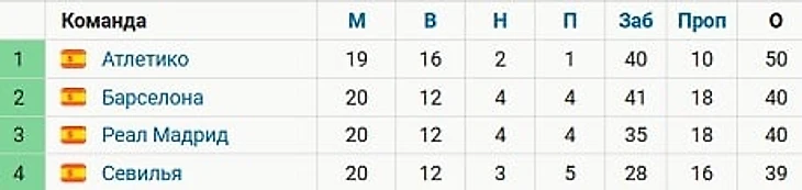 «Барса» набрала 40 очков и обошла «Реал» в таблице, заняв второе место. У мадридцев тоже 40 очков, но у сине-гранатовых лучше разница забитых и пропущенных голов: +23 против +17 у «сливочных».