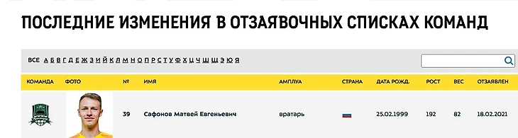 «Краснодар» убрал Сафонова из заявки на сезон в РПЛ