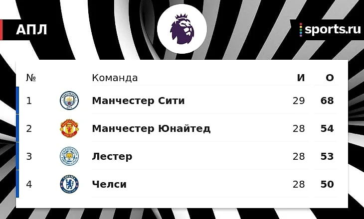 «Горожане» опережают «Манчестер Юнайтед», идущий вторым, на 14 баллов, проведя на матч больше.