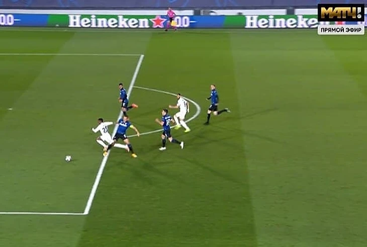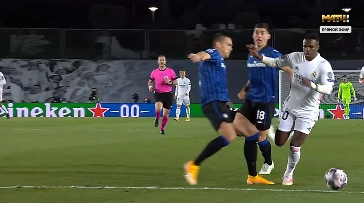 Судья назначил пенальти в ворота «Аталанты» за фол на Винисиусе. Рамос забил