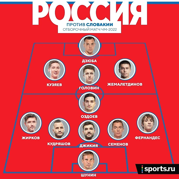 Стал известен стартовый состав сборной России на игру 3-го тура квалификации чемпионата мира 2022 года против Словакии.