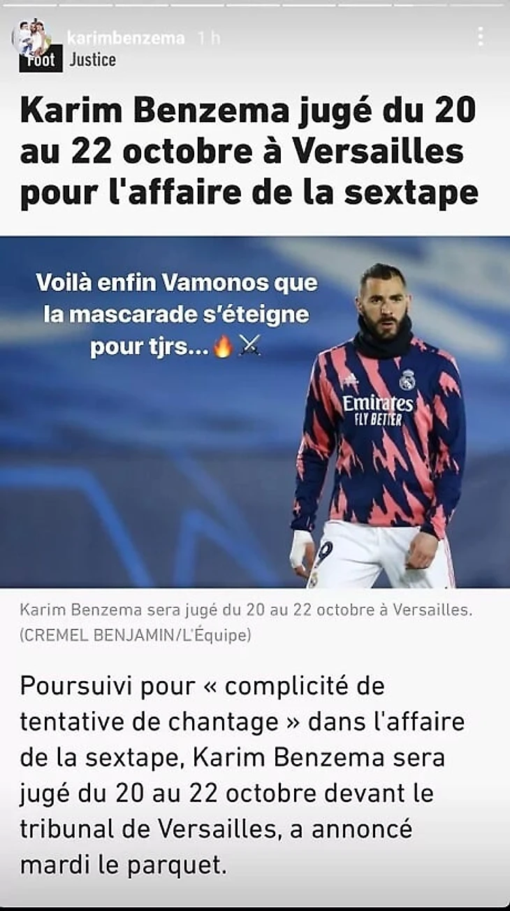 «Вуаля, наконец-то, поехали! Пусть этот фарс закончится навсегда 🔥⚔️», – написал Бензема в инстаграме.