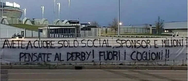 На полотнище, адресованном игрокам, было написано: «Вас волнуют только социальные сети, спонсоры и миллионы. Сосредоточьтесь на дерби! Покажите яйца!»