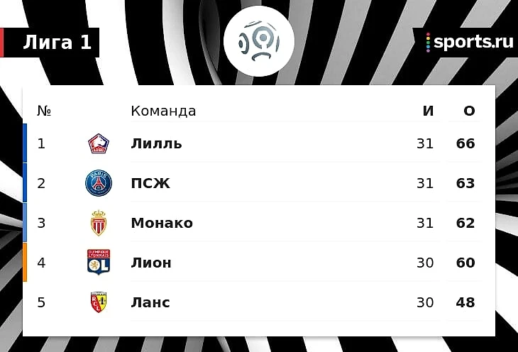 «ПСЖ» отстает от «Лилля» на 3 очка после поражения от него. «Монако» – 3-й, «Лион» – 4-й c игрой в запасе