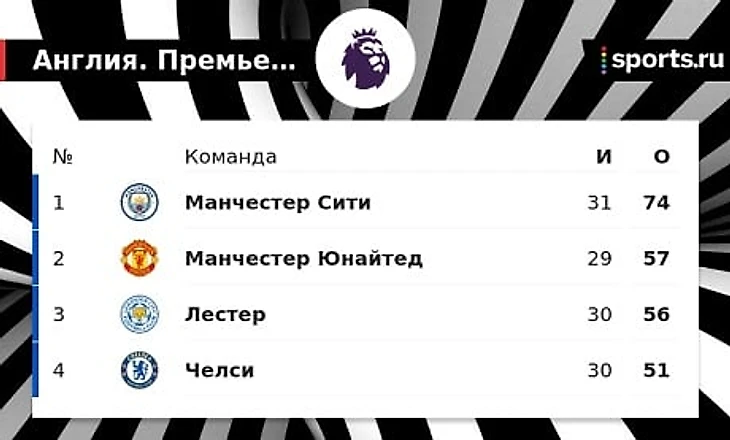 Команда Пепа Гвардиолы на 17 очков опережает «Манчестер Юнайтед», у которого два матча в запасе. «Лестер» и «Челси», проведя на одну игру меньше, отстают от «Сити» на 18 и 23 очка соответственно.