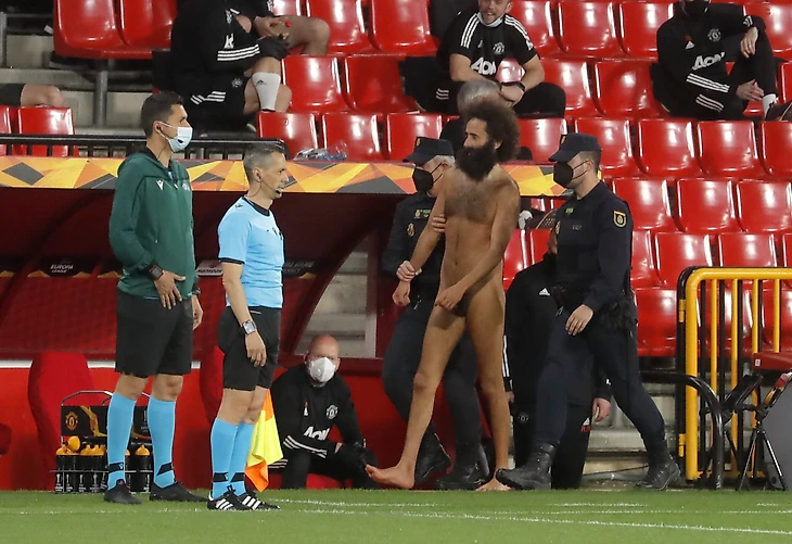 Голый мужчина выбежал на поле во время игры «МЮ» в ЛЕ. Матч с «Гранадой» проходит без зрителей