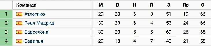 Команда Зинедина Зидана догнала по очкам лидера Ла Лиги «Атлетико» (по 66), у которого имеется игра в запасе. В 30-м туре «Атлетико» 11 апреля встретится с «Бетисом».