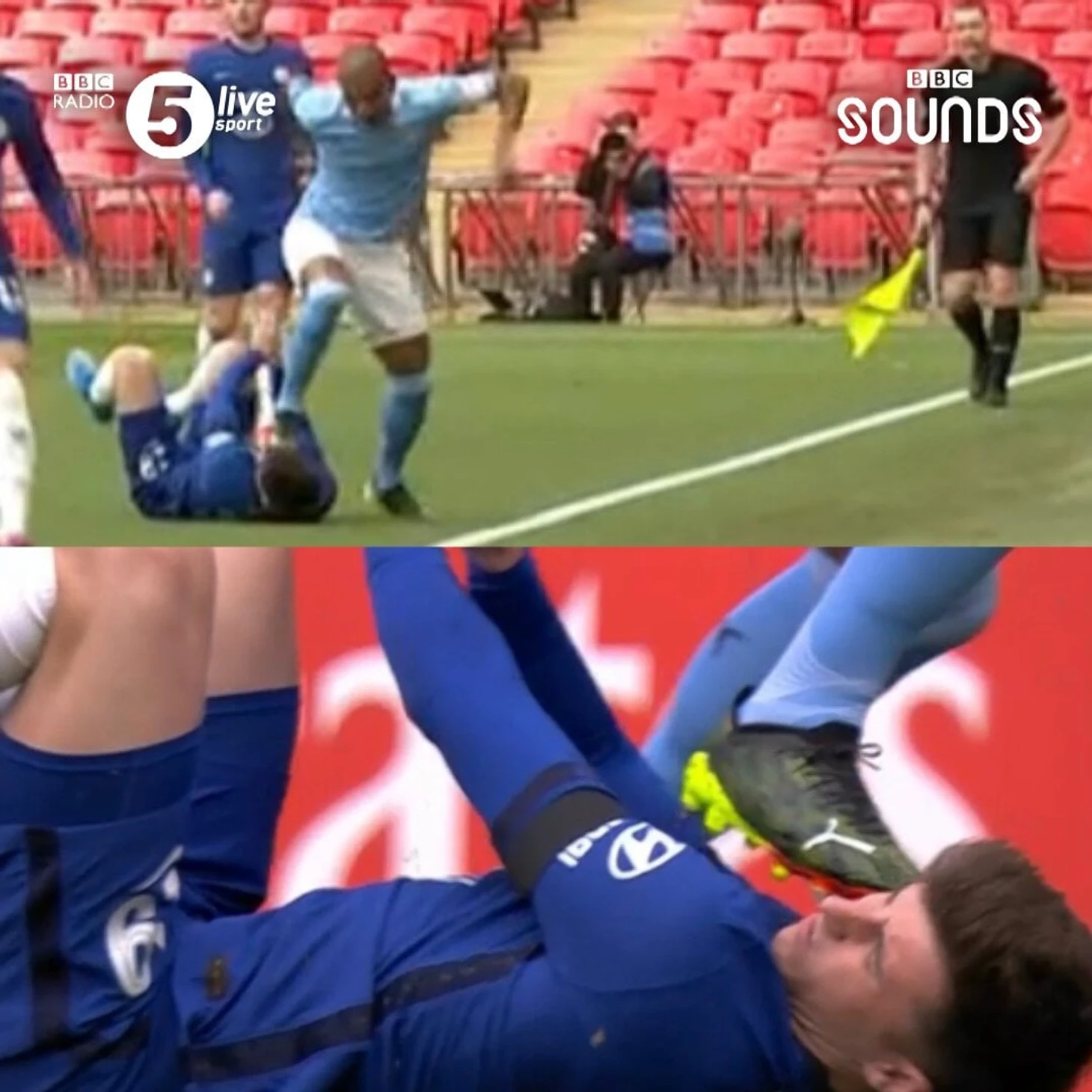 Фернандиньо зацепил лицо Маунта бутсой, когда тот лежал на газоне