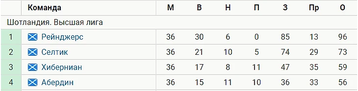 «Рейнджерс» разгромили «Селтик» (4:1). У команды Джеррарда 0 поражений и 96 очков за 2 тура до конца
