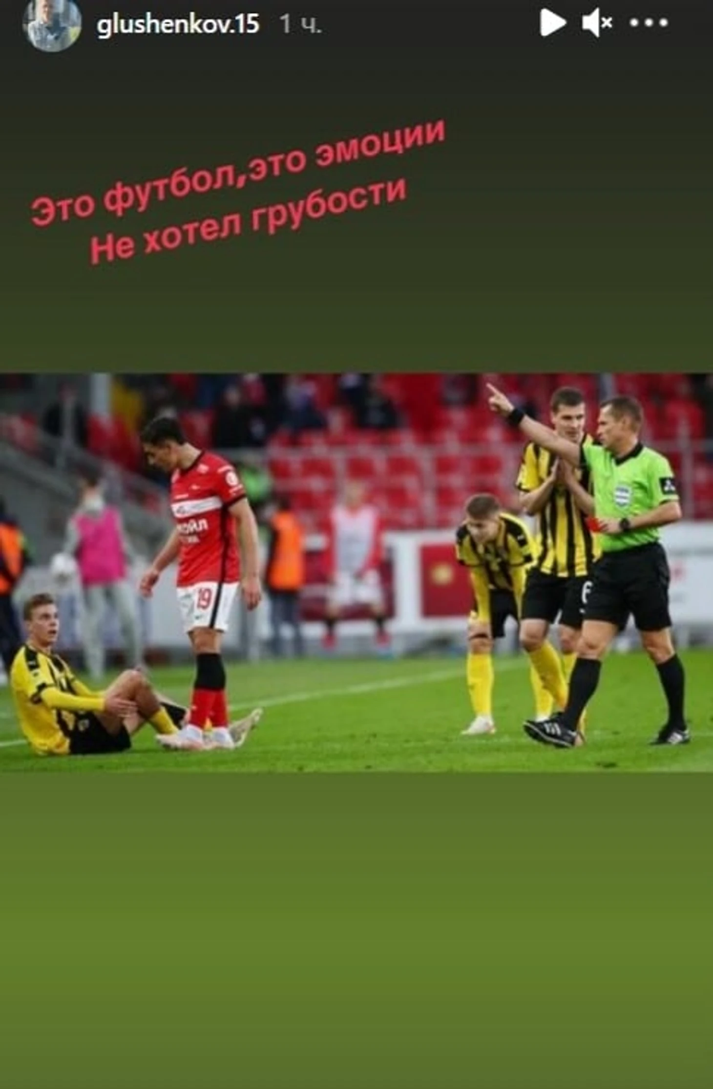 «Это футбол, это эмоции. Не хотел грубости», – написал Глушенков.