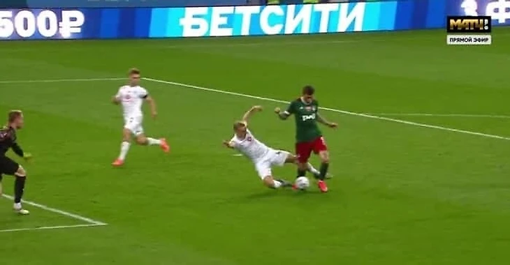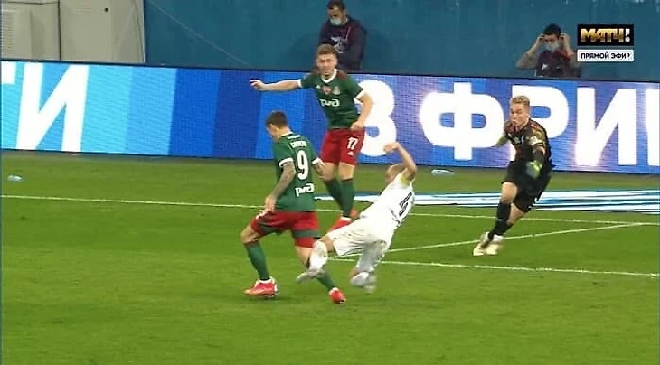 Форвард заработал пенальти в начале второго тайма – защитник самарцев Сергей Божин сбил Смолова в своей штрафной.