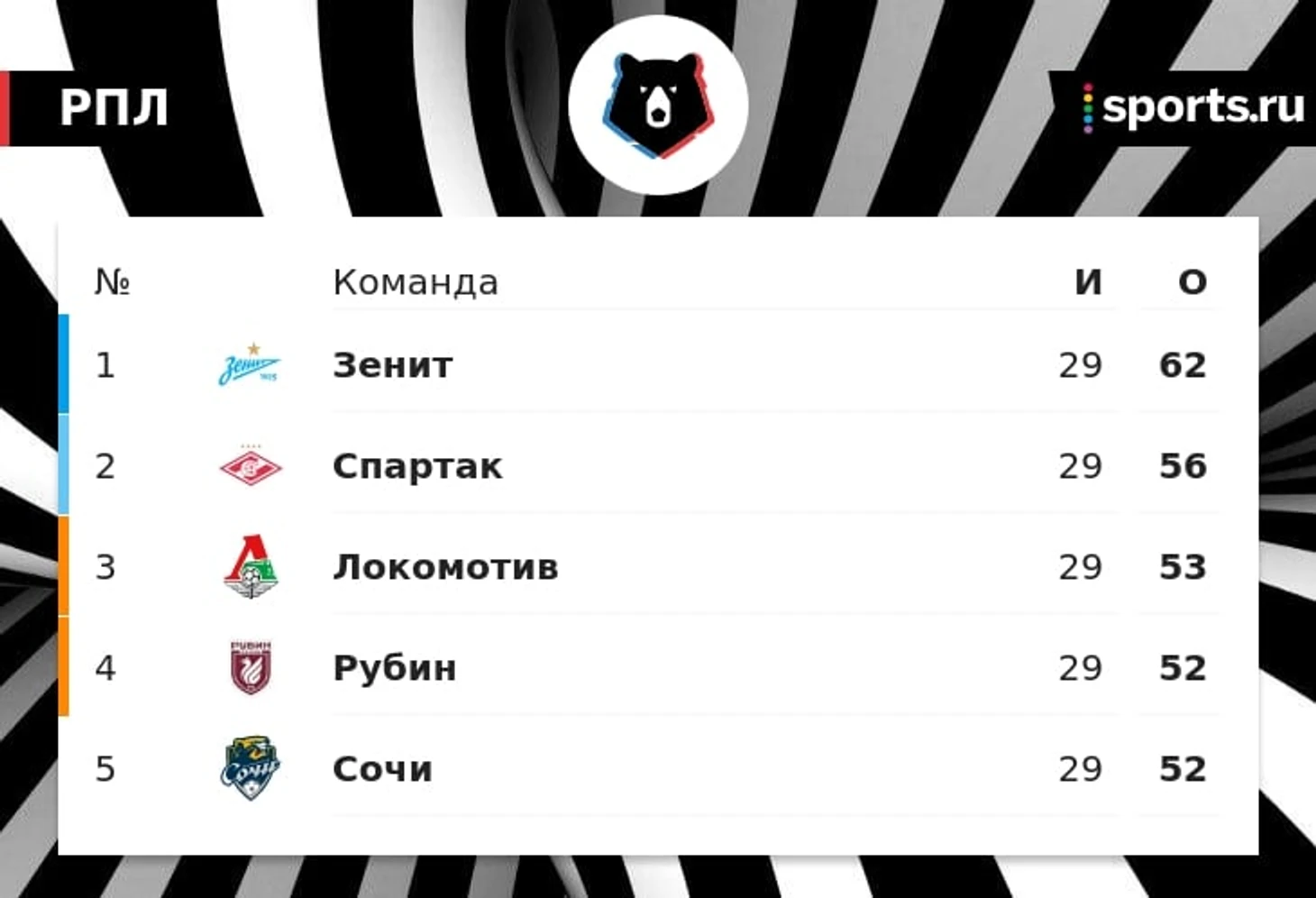 «Сочи» претендует на участие в Лиге конференций, «Спартак» обеспечил себе участие в еврокубках на следующий сезон.