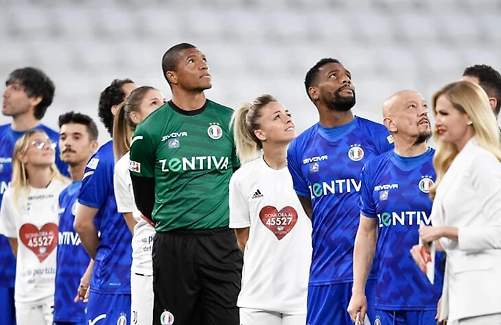 Пирло, Буффон, Аллегри, Аньелли, Тотти, футболистки «Юве», Леклер и Сайнс сыграли в благотворительном матче с итальянскими певцами