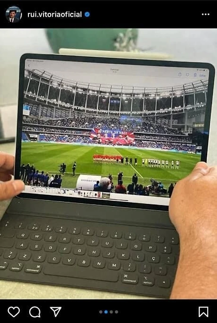На экране ноутбука португальца при этом демонстрируется фотография с матча Россия – Болгария. Позже Витория удалил пост.